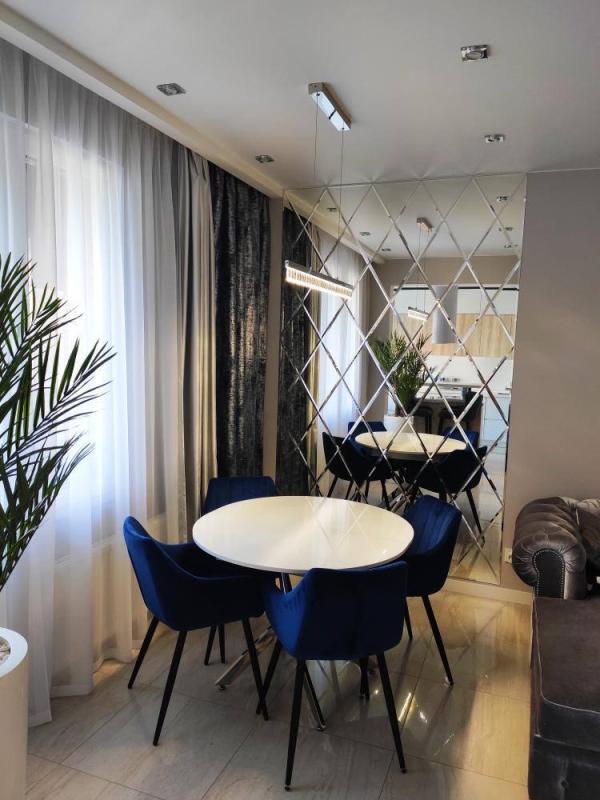 Для украшения использовалась зеркальная плитка формы вытянутый ромб серебряного цвета.
